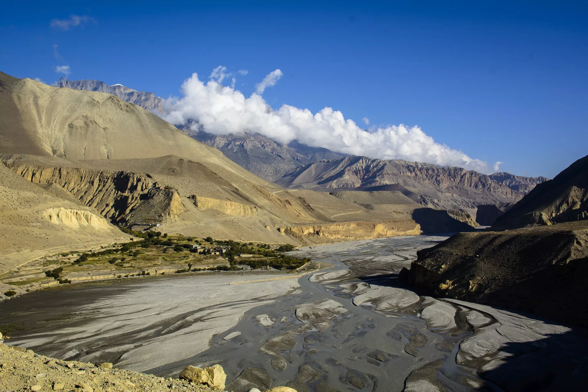 It's a very long day, with frequent ascents and descents. There are several points behind the Chogo La, with views of the left valley. But you'll be in the new world after that. The trail continues down the Chogo La to Ghar Gompa, which is one of the best gompas in the entire area of Mustang. Now you'll climb up to Mui La, where the dry mustang is best viewed. The path goes down abruptly into a beautiful Drakmar village. .
