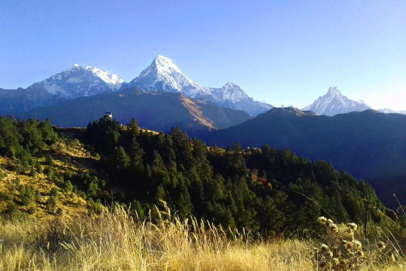 - Beautiful closer views of the Annapurna, Machhapuchhre and Dhaulagiri range