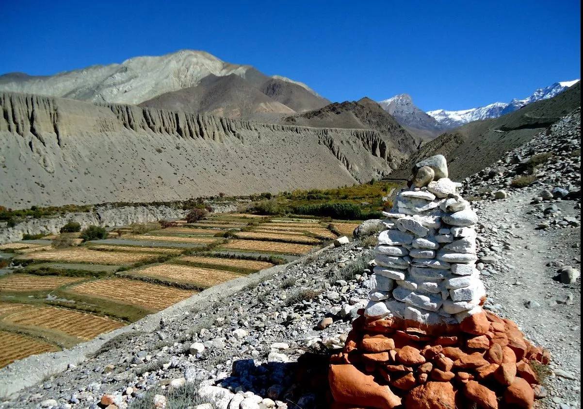 Early morning drive north through the Kali Gandaki Valley, passing through Beni, Tatopani, and Marpha (famous for apple orchards). Reach Jomsom (2,743 m) and check into guesthouse. Optional: Fly Pokhara → Jomsom (25 min).