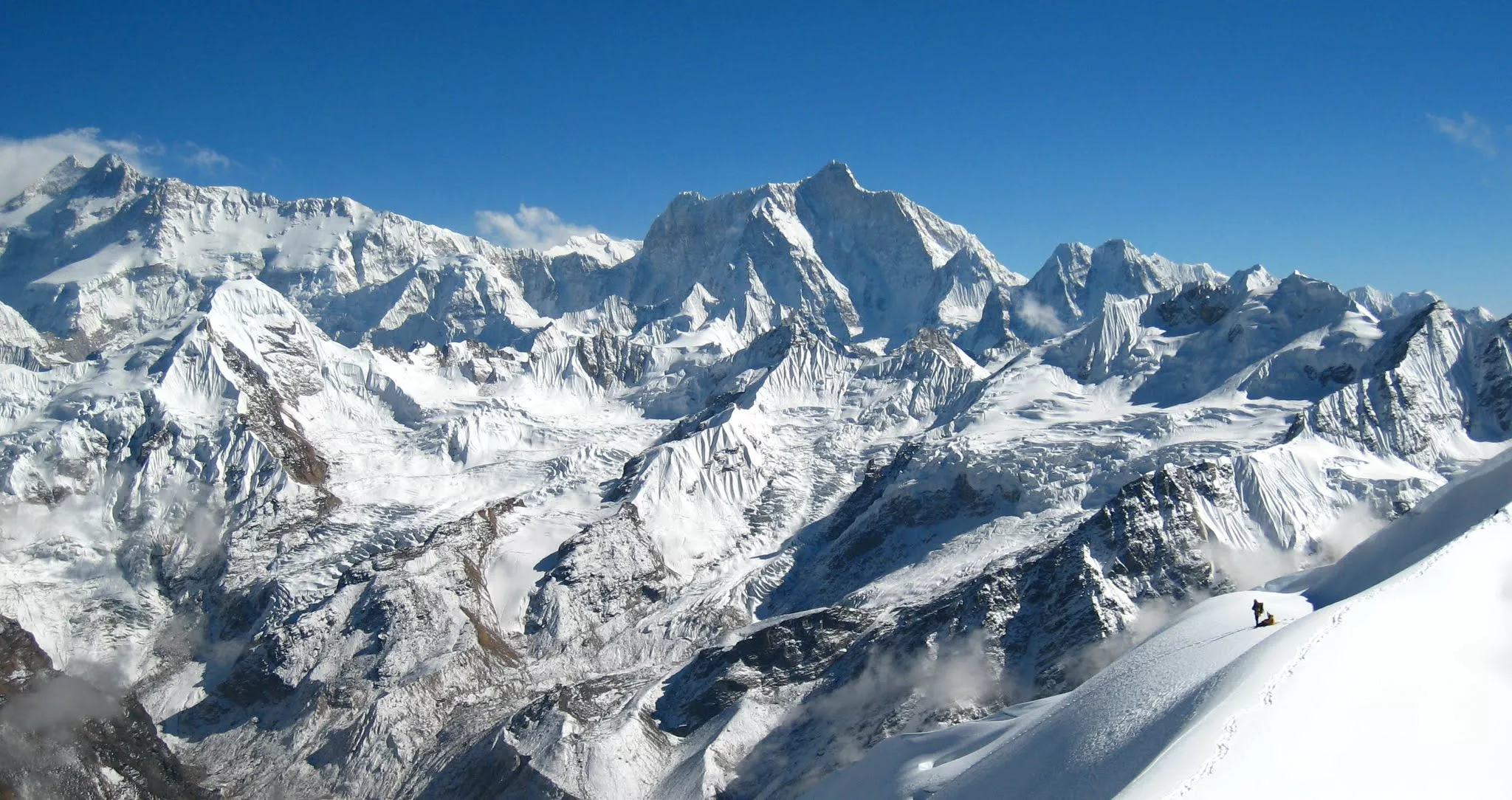 Today, we will take a flat path along the Lhonak Glacier to Lhonak, where we meet today. At this height, the air is thin and dry, but we're balanced by the spectacular view from the Wedge, the Mera, the Nepal peak, and the Twins.